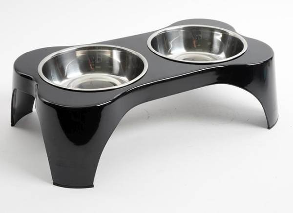 Large bone stand13 oz metal pet bowlDishwasher safe (metal bowl only)Not microwave safeDimensions: 13.75″ x 8.5″ x 4″Available in- Black only